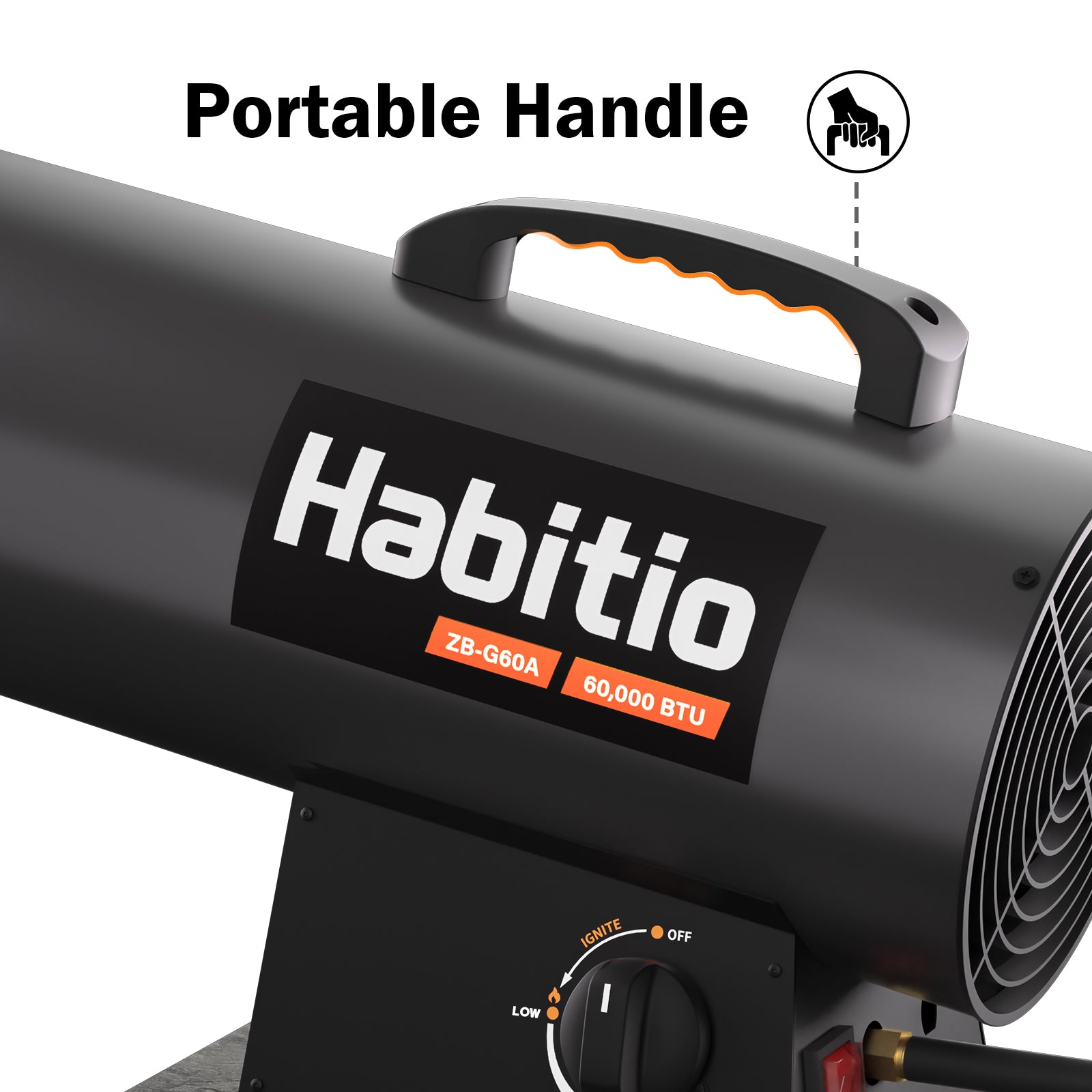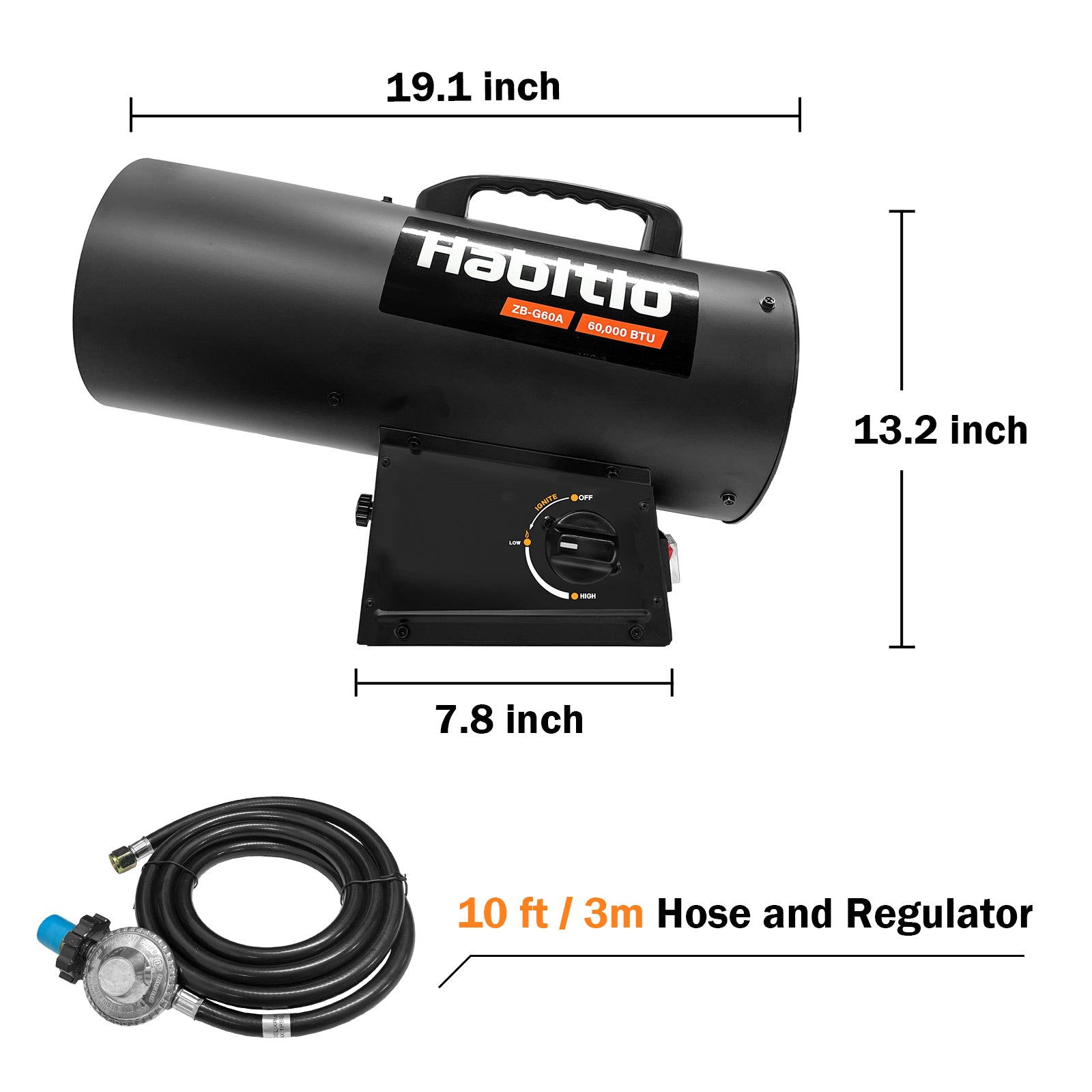 60,000 BTU Forced Air Propane Heater, Portable Torpedo Heater for Jobsite, Garage, and Construction Sites, 10 ft Hose with Regulator Included