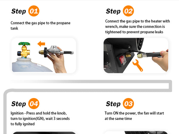 ①After connecting the gas pipe to the machine, please Use a Wrench to Tighten it to prevent gas leakage or other safety issues; ②The machine will produce an acceptable level of noise when running